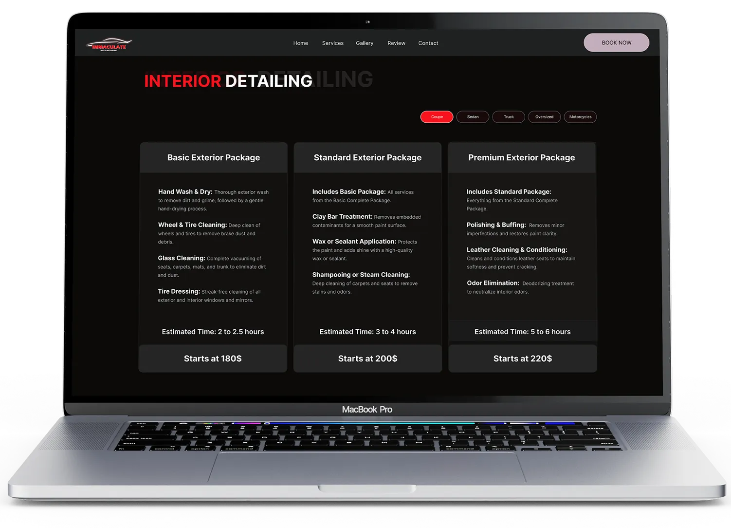 For this project, I led the full redesign of Immaculate Auto Detailing, a small-town detailing service whose existing site was outdated and inaccessible. The new design focused on improving accessibility, simplifying navigation, and creating a seamless booking experience for a wide range of users, from retirees to busy parents. By emphasizing clarity and trust, the redesign aimed to better reflect the business’s community values while increasing customer engagement.