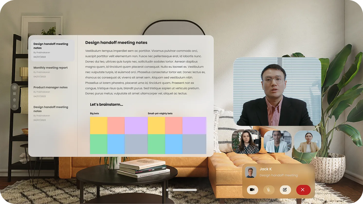 Built interactive mockups to visualize AI meeting assistants and spatial team interactions.